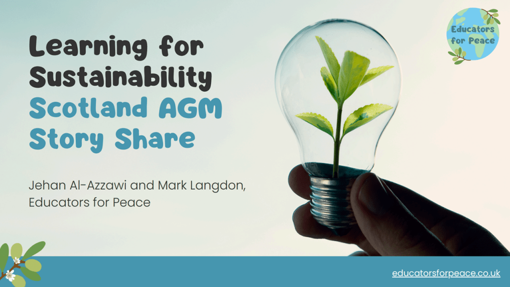 Jehan Al-Azzawi and Mark Langdon, co-founder/chair and treasurer at Educators for Peace, co-constructed their presentation around the emotions of ‘Inspiration’ and ‘Interest’. They shared more about how this initiative is being used as a catalyst for transformative teaching and learning in both early learning/schools and higher education.
