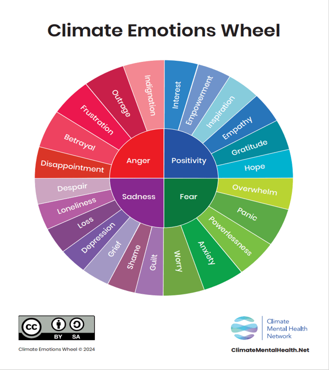 Our Youth Co-ordinator, Alyson MacKay, then guided participants through a short ‘icebreaker’ based on the Climate Emotions Wheel from the Climate Mental Health Network: framing these emotions as a model that can be applied beyond ‘climate’ to address all aspects of Learning for Sustainability.